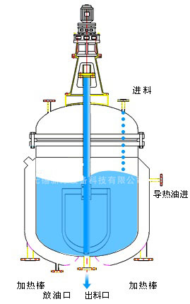 攪拌罐蓋上部配置有傳動(dòng)裝置(電機(jī)或減速器),由傳動(dòng)軸驅(qū)動(dòng)攪拌罐內(nèi)的攪拌器。