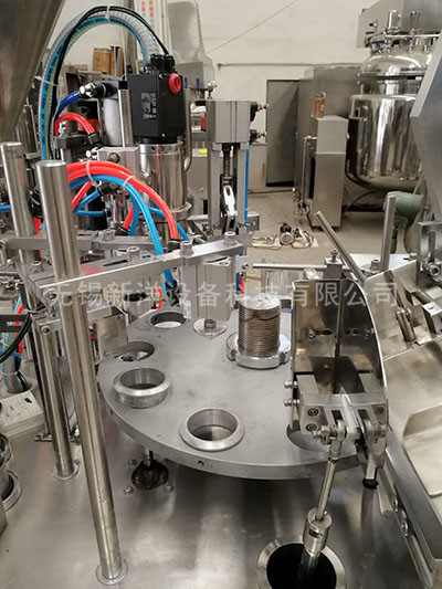 50全自動復合管灌裝封尾機采用全不銹鋼制作,工作過程采用按扭控制;人工上管,8工位自動回轉(zhuǎn),定量灌裝、自動切斷、加熱封尾、切尾、成品退出。所有工作采用高精度氣缸全行程,灌裝量調(diào)節(jié)方便,灌裝速度可調(diào)。該機實用于各種規(guī)格復合軟管的灌裝、封尾、日期打印、切尾。封尾外形美觀整齊,封合牢固,計量精度高,穩(wěn)定性好。根據(jù)物料不同可選配:料斗加溫系統(tǒng)、防拉絲灌裝頭。